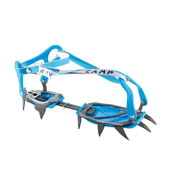Version mit Universalbindung des Modells Stalker, mit einer äußerst modernen und ansprechenden Glanzlackierung. Die klassische Konstruktion aus Chrommolybdänstahl hat bewiesen, zeitbeständig zu sein. Die flexiblen Bindungen an Ferse und Spitze, aus thermoplastischem Material, und der robuste Nylonriemen mit Metallringen machen es perfekt für fast alle nichtsteigeisenfesten Schuhe. Eine optimale Wahl, mit ausgezeichnetem Preis-/Leistungsverhältnis, für den Alpinismus allgemein und für Gletscherwanderungen.