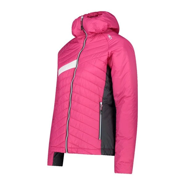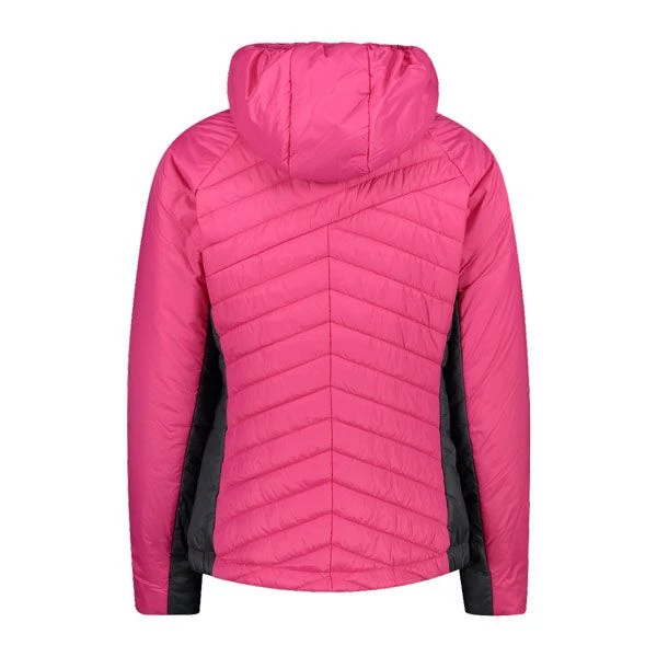 Eine zweite Schicht mit einer Hybridkonstruktion, die Abschnitte aus 20D-Nylongewebe – ultraleicht, widerstandsfähig und atmungsaktiv – mit einer recycelten PrimaLoft® Black Insulation Hi-Loft Ultra Wattierung auf der Vorderseite kombiniert. Die speziellen, vertikal ausgerichteten mechanischen Falten, die die Polsterung kennzeichnen, sind kompressionsbeständig und schaffen Räume, in denen Luft eingeschlossen und Körperwärme gespeichert wird, um auch bei niedrigen Temperaturen einen hohen Komfort zu gewährleisten. Dank der leichten Komprimierbarkeit kann das Kleidungsstück bei Bedarf getragen und im Rucksack verstaut werden, wenn es nicht mehr benötigt wird. Dieses Modell ist außerdem mit einer PFC-freien, wasserabweisenden Behandlung versehen, die sich perfekt für die Vervollständigung der Schichten eignet, die bei intensiven Bergaktivitäten benötigt werden. Zwei seitliche Reißverschlusstaschen, elastische Ärmelbündchen, ein Frontreißverschluss mit winddichter Patte gegen Scheuern und eine im Kragen integrierte Wickelkapuze verleihen dem Kleidungsstück einen sportlichen Look.