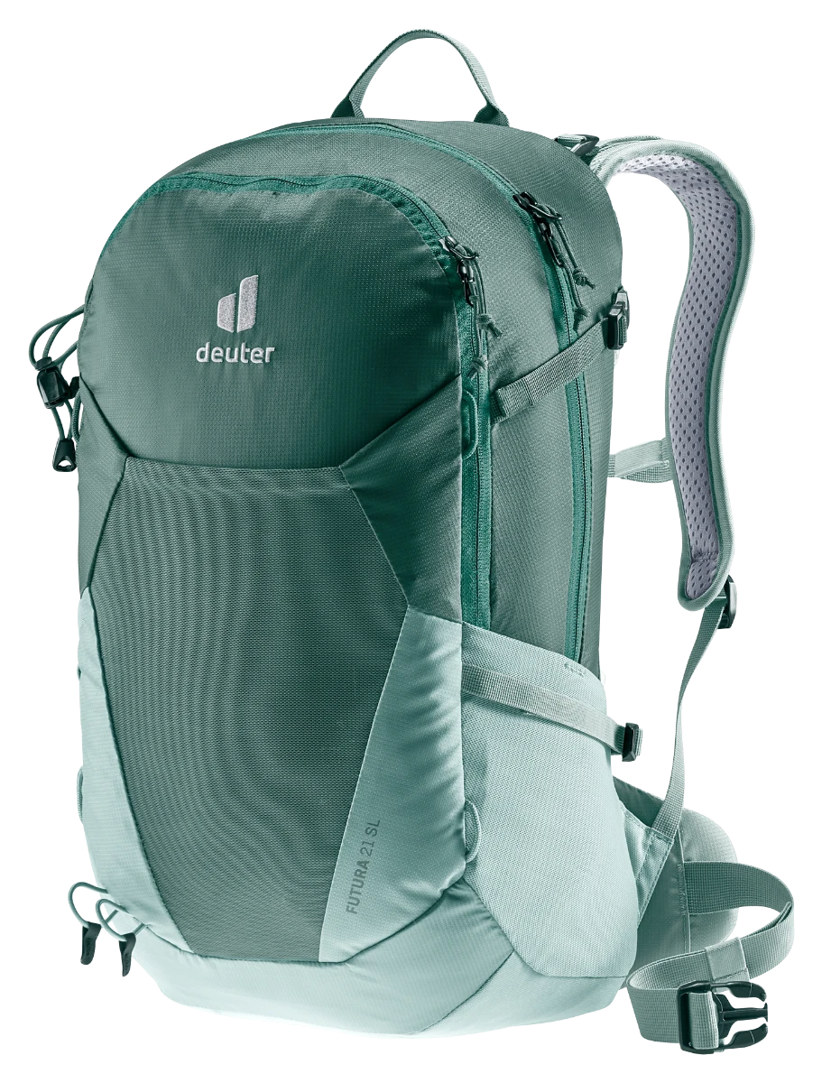 Der leichte und funktionelle Futura SL Wanderrucksack ist speziell auf die weibliche Anatomie abgestimmt. Mit einem kürzeren Rücken, schmäleren Schulterträgern und konisch geformten Hüftflossen sitzt der Futura SL bequem auf dem Rücken. Das luftige Aircomfort Rückensystem sorgt mit dem neuen Mesh, bei sportlichen Tageswanderungen, für maximale Belüftung am Rücken. Sollte die Kleidung feucht werden, kann sie in der elastischen und luftdurchlässigen Fronttasche während der Wanderung schnell trocknen.