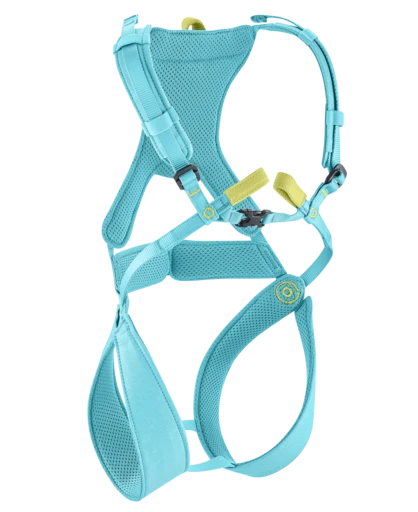 Mit diesem gepolsterten Komplettgurt haben bereits die kleinsten Nachwuchskletterer und -Bergsteiger bis 40 kg Spaß beim Kraxeln. Die steife Konstruktion mit fixierten Beinschlaufen erleichtert das Anlegen und dank der beiden Slide Block-Schnallen ist der Gurt schnell auf die Körpergröße eingestellt. Die beiden großen Einbinderinge bieten genug Platz für zwei gegengleich geclippte Karabiner (bspw. beim Topropen). Der Clou: Wird das Kind größer, verschiebt sich auch der Anseilpunkt und der Gurt „wächst mit“. Der Fraggle wird außerdem komplett nach den strengen Anforderungen des bluesign® systems hergestellt, um Umwelt, Ressourcen und Kids zu schonen.