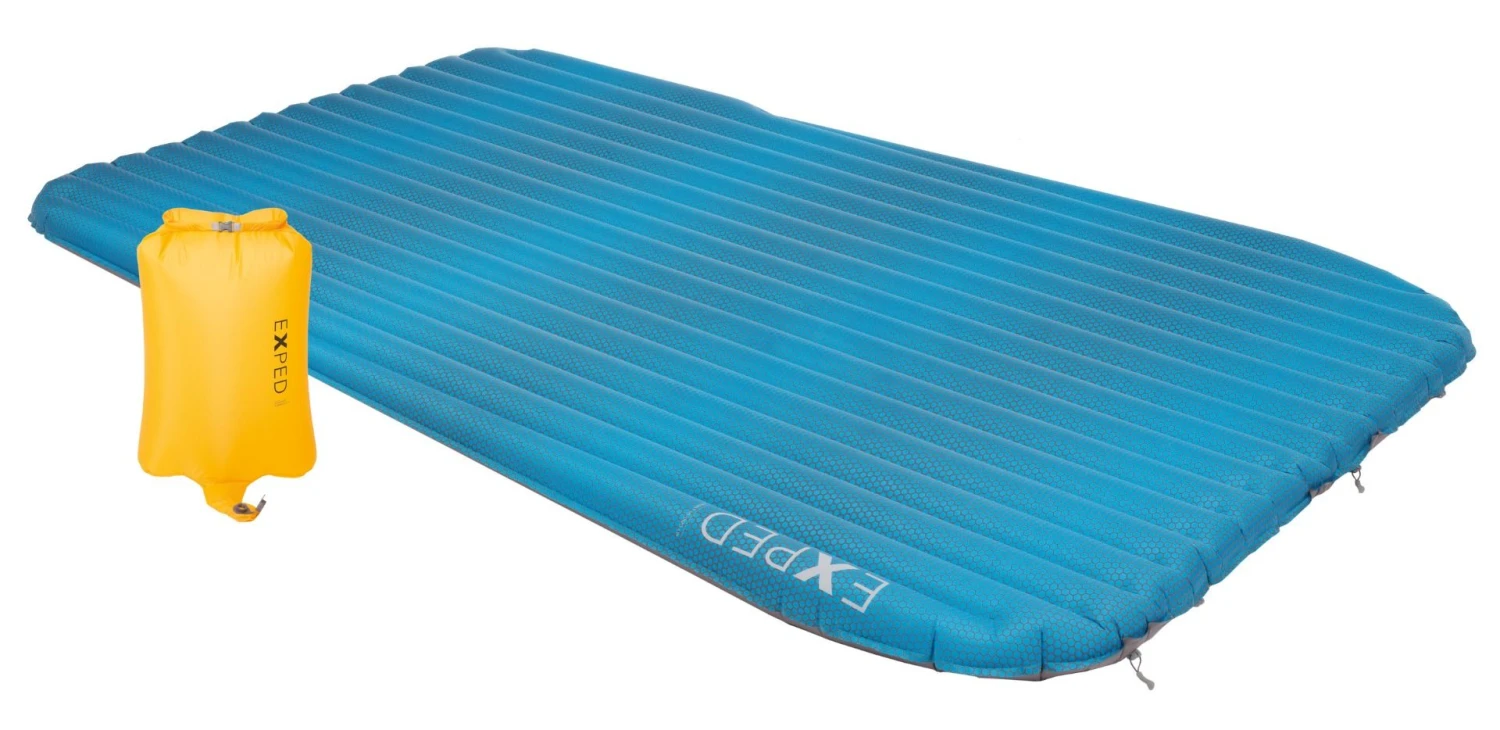 Das Fliegengewicht unter den luftisolierten Doppelbetten für‘s Sommercamping oder für den Einsatz in warmen Klimata. Diese Matte für 2 Personen wiegt wahrscheinlich weniger als eine 1 l Wasserflasche, lässt sich unverschämt klein verpacken und garantiert dank EXPED’s Anti-Rutsch GripSkin Technologie einen ruhigen Nachschlaf. Mit dem beiliegenden Schnozzel Pumpbag UL M ist die Matte im Nu mühelos aufgeblasen. Gleichzeitig eignet er sich als wasserfester Packsack für Schlafsack, Quilt oder Bekleidung.