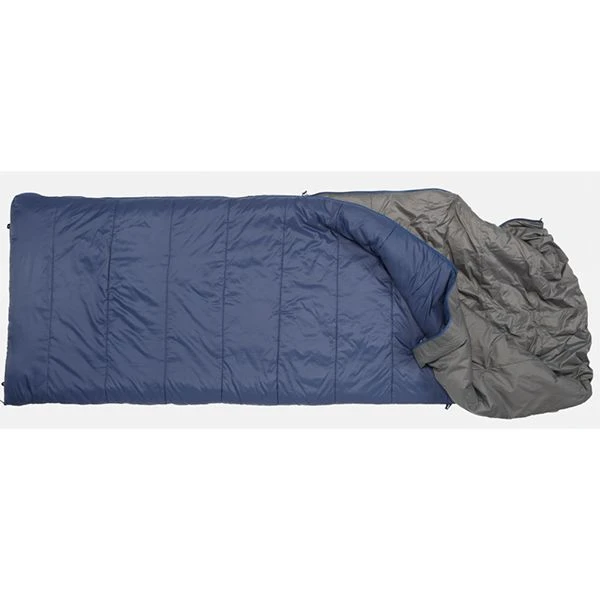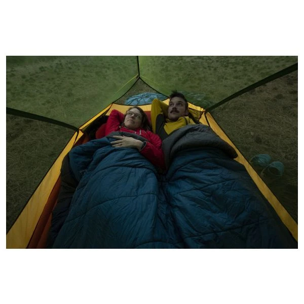 Duplicate your at-home sleep experience in the outdoors – take comfort anywhere! MegaSleep 25/40 is a roomy, rectangular 3-season sleeping bag for car camping and backpacking. On one side, more layers of insulation, when placed over the top of the sleeper, provide a temperature rating of 25°F for cooler nights. The other side, with a little less insulation, is just right for warm summer nights with a rating of 40°F. MegaSleep 25/40 is designed to fit the EXPED MegaMat for an at-home sleep experience anywhere, but due to its lightweight and compressible materials it can be carried in a backpack as well. It quickly and easily unzips to become a plush blanket for unrestricted sleeping. MegaSleep 25/40 can also be zipped together with another MegaSleep 25/40 to create a roomy couples sleeping bag.