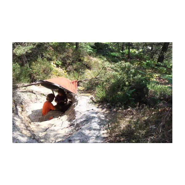 4 Schlaufen in den Ecken, um die Matte am Boden oder auch als wasserdichte Tarp an Bäumen zu fixieren