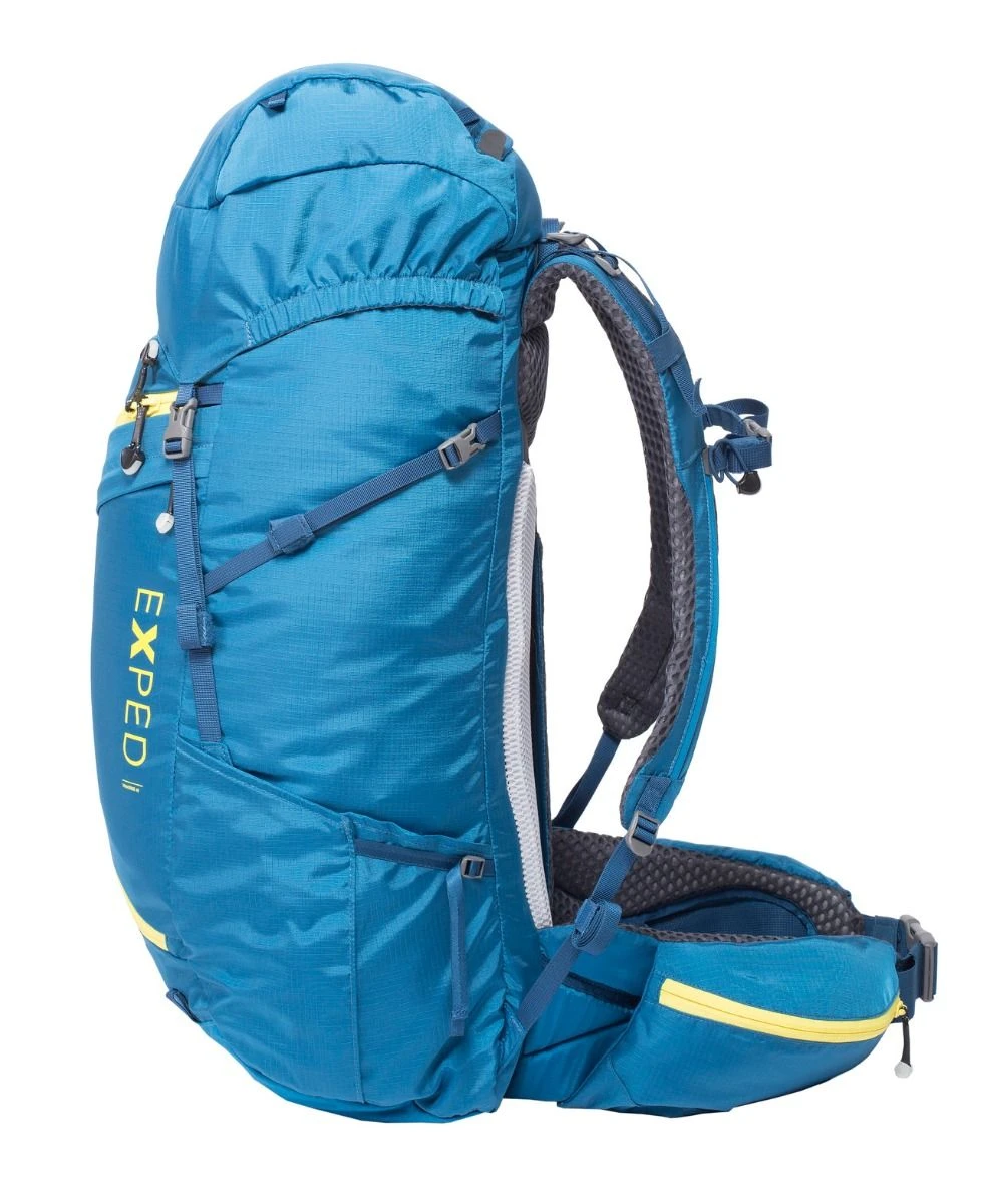 Über die klassische Deckelöffnung und den praktischen Frontzugang ist der ganze Rucksackinhalt schnellstens zur Hand. Verschiedene innen liegende Steck- und Reissverschlusstaschen aus Netzmaterial erleichtern die Organisation und die Übersicht. Die beiden seitlichen Stecktaschen machen Trinkflaschen schnell zugänglich, und in den zwei Reissverschlusstaschen am gepolsterten Hüftgurt finden auch grössere Smartphones und GPS ihren Platz.