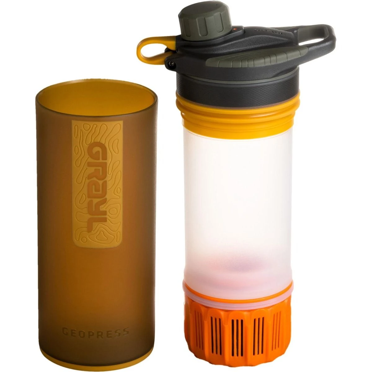 Unübertroffene Leichtigkeit, Geschwindigkeit und Bequemlichkeit. Kein anderer kann mit der Geschwindigkeit, Einfachheit und Effektivität von GeoPress mithalten. In acht Sekunden werden überall auf der Erde 24 Unzen (710 ml) sicheres, sauberes Trinkwasser hergestellt. Nutzen Sie die Wasserquellen der Welt und trinken Sie sicher aus unreinen Wasserhähnen, Hotel Wasserhähnen, trüben Flüssen, Brunnen oder Seen. GeoPress schützt vor globalen Krankheitserregern auf Wasserbasis (Viren, Bakterien, Protozoen-Zysten), Pestiziden, Chemikalien, Schwermetallen und sogar Mikroplastik. Verbessert auch Geschmack, Geruch und Klarheit!