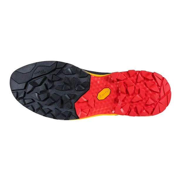 Die Zungenkonstruktion wurde von den Runningschuhen inspiriert: die Balgkonstruktion vermeidet das Eindringen von Gegenständen. Die Kombination Sohle/Zwischensohle wurde mit doppelt verdichteter komprimierter EVA hergestellt, für Dämpfung auf der Ferse und Stabilisierung auf dem Mittelfuß:. Die vordere Seite der Zwischensohle ist mit einer, mit Zweikomponenten-Spritzgieß-Technik erstellten TPU-Schicht ausgestattet, die gleichzeitig als Zwischenschicht dient sowie mit Climbing-Zone und also Rock-Guard-Schicht des Vorderfußes dientDie Sohle mit doppelter Vibram MegaGrip und Idrogrip – Mischung ist die perfekte Kombination zwischen Halt und Langlebigkeit. Die breite Ferse unterstützt das Bremsen beim Downhill und sorgt für mehr Halt beim Uphill. TX Guide: be your guide.