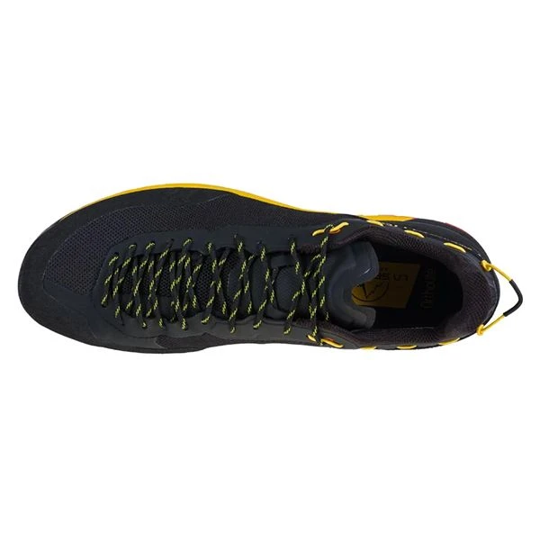 Technischer Zustiegsschuh für Bergführer und all jene, die am Berg beschäftigt sind und ein leistungsfähiges Schuhwerk für den Zustieg und beim Bergsteigen suchen. TX Guide ist der technischste Schuh der Linie TX Series La Sportiva. Entwickelt wurde dieser Schuh für technische Zustiege und Bergsteigen für Bergführer und all jene, die am Berg beschäftigt sind und ein leistungsfähiges und langlebiges Schuhwerk suchen. TX Guide ist vielseitig, leicht, bietet Schutz und eignet sich perfekt für walk-run & climb. Das sieht man auch am Look, der an der Kombination zwischen running/approach und der technischen Lösung aus der Climbing-Welt (Sohle, Rand und Schnürung) orientiert ist. Die neue Tech Fit Passform, schlicht und eng anliegend, sorgt für maximale Leistungen. Die sehr stabile Spitze ermöglicht während des Bergsteigens optimalen Halt an Kanten. Der hoch abriebfeste Mesh-Schaft besteht aus einer Lage zur Optimierung des Innenvolumens und verfügt über Mikrofaser-Schutzverstärkungen innen und TPU-Verstärkungen außen, um die Abriebfestigkeit zu gewährleisten. Die Schnürung ist asymmetrisch und approach-style bis zur Spitze für maximale Passformgenauigkeit, während die Hinterseite an den Mythos-Style-Look erinnert und ein perfektes Verschließen an der Ferse ermöglicht. Der climbing-inspired Schutzrand ist aus leichtem PU-TECH Lite Material.