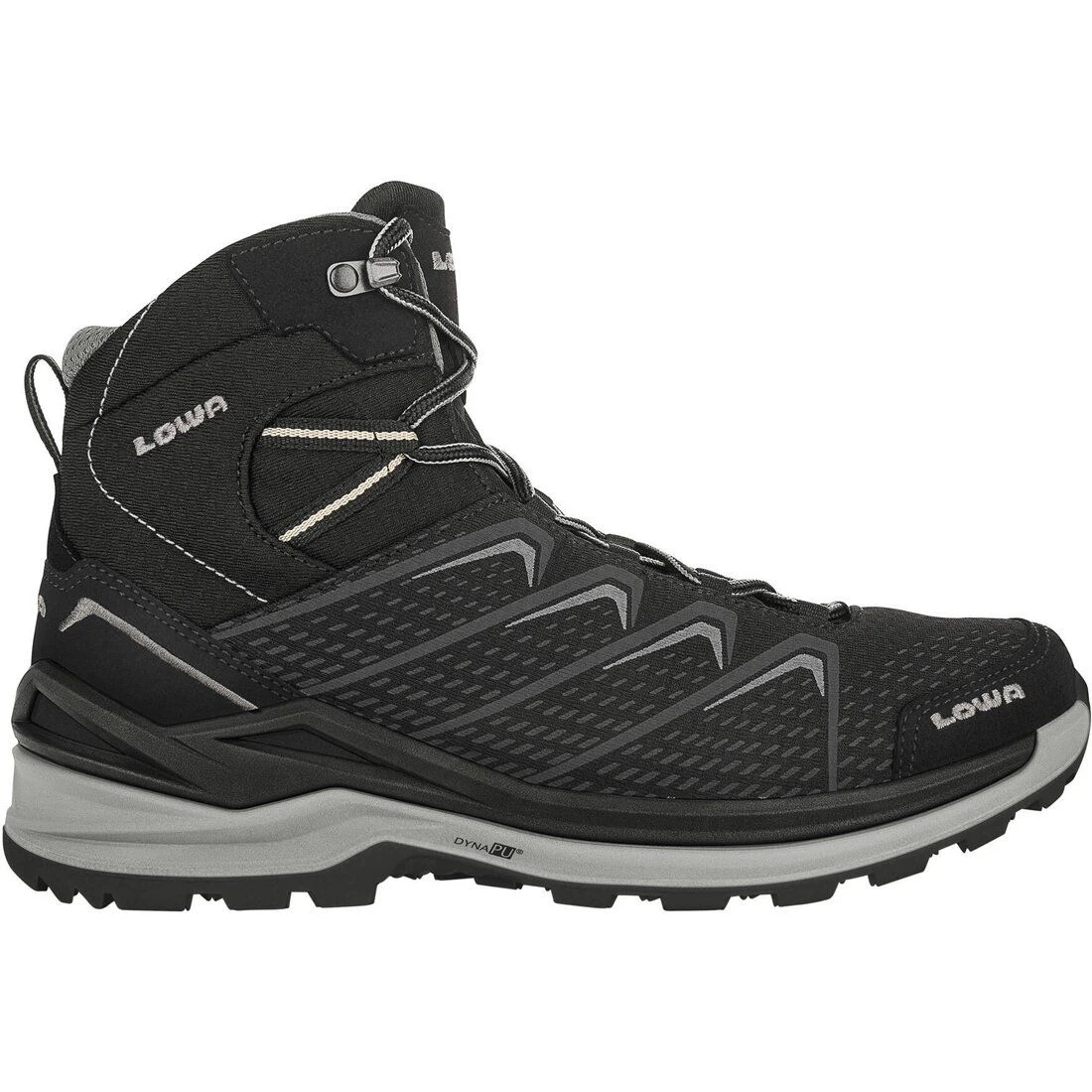 Die Mittelsohle in Form des Lowa-Monowrap® Rahmens unterstützt den Fuss an besonders beanspruchten Stellen. Die Sohlenkonstruktion ist dabei nur leicht hochgezogen. - DynaPU®