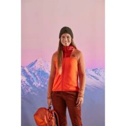 Warmer Midlayer aus schnell trocknendem, atmungsaktivem Material, zwei Zip-Taschen seitlich. Happy Mountain-Patch auf der Brust, runder Maloja-Schriftzug an der Rückseite vom linken Oberarm.
