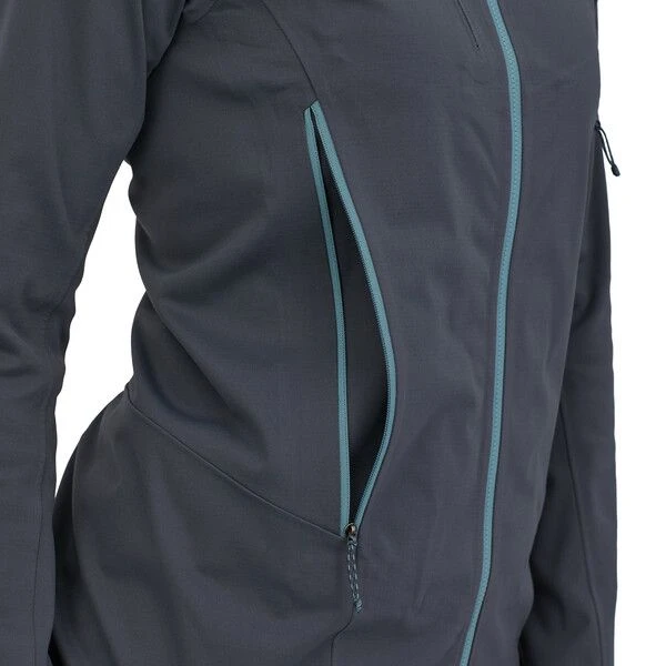 - wetterfestes Stretch-Laminat aus einem weichen Außenmaterial und einem strukturierten Strickfutter, das leicht auf der nächsten Schicht gleitet
