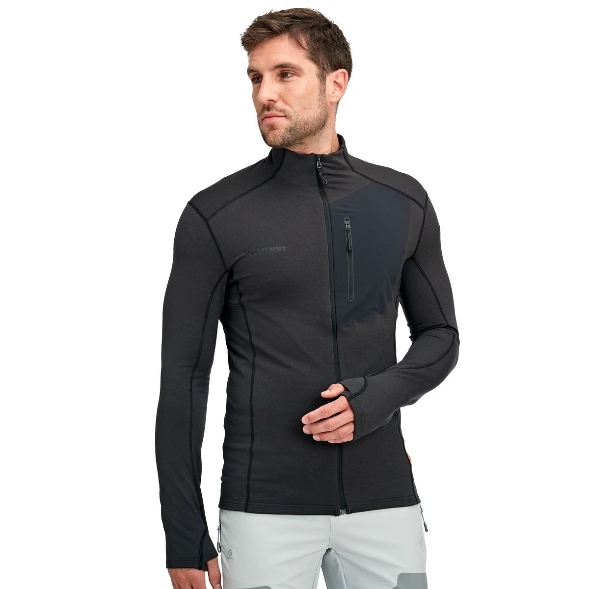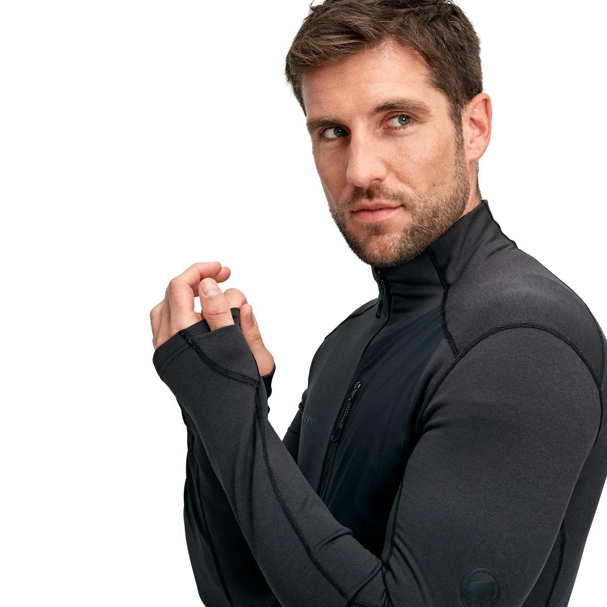 - Funktionale Daumenschlaufe, die an der Öffnung sauber schliesst