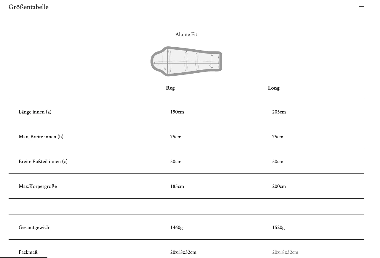 - Größenübersicht Mountain Equipment