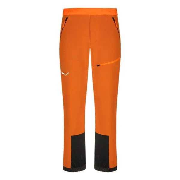 Sie hat eine eng anliegende Passform sowie einen flachen Hosenbund mit integriertem Kordelzug, so dass sie sich gut unter einem Klettergurt tragen lässt. Außerdem verfügt diese Hose über zwei Reißverschlusstaschen, dazu einen großzügigen Kanten- und Steigeisenschutz, einen Schneefang, einen voll elastischen Beinsaum mit innenliegenden Silikon-Grippern und Reißverschlüssen an den Beinenden, die eine anliegende Passform sowohl über Bergschuhen als auch über Skitourenstiefeln garantieren.