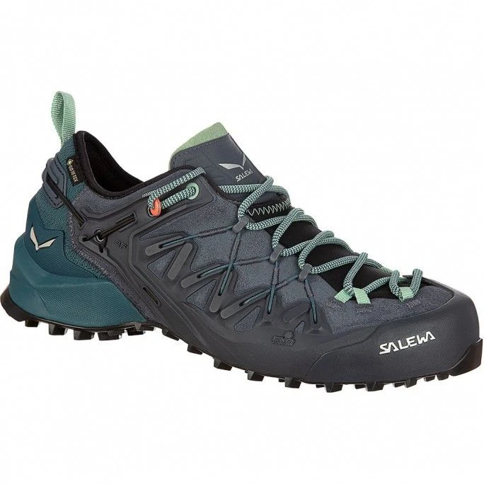 Der Wildfire Edge ist ein Schuh für technische Zustiege, der sich vom Wander- in einen Kletterschuh verwandeln lässt. Das Salewa Switchfit-System ist so einfach wie clever und wurde zusammen mit Bergführern und Top-Kletterern in den Dolomiten entwickelt: Ziehe die Schnürsenkel einfach an der hinteren Öse zusammen und nach oben. Dadurch wird dein Fuß nach vorne in die Zehenkappe gezogen, die Zehen werden wie in einem Kletterschuh zusammengedrückt. Nach dem Klettern kannst du die Schnürsenkel an der hinteren Öse lösen, damit weitet sich die Zehenkappe und bietet größeren Tragekomfort beim Wandern. Um die Kletterpräzision zu verbessern, ist der Wildfire Edge außerdem mit einer Edging Plate ausgestattet, einer Innensohlen-Platte unter dem Vorfuß, die für zusätzliche Steifigkeit unter den Zehen sorgt. Die Pomoca Speed MTN-Sohle funktioniert dank Pomoca Butylverbund mit verbessertem Grip und höherer Friktion bei trockenem und nassem Wetter. Die Sohle hat eine Präzisionskletterzone im Zehenbereich, eine gute Edging-Performance und aggressive Stollen für verbesserte Traktion bei schlammigem und weichem Untergrund. Für eine bessere Torsionsfestigkeit besteht das Außenmaterial aus Exa Shell, das sich in Kombination mit dem 3-F System um den Fuß legt und für Flexibilität, Sitz und Unterstützung sorgt. Das Kletterschuh-Schnürsystem geht bis zu den Zehen, um einen präziseren Sitz und mehr Anpassungsmöglichkeiten zu liefern. Das Multi Fit Footbed Plus (MFF+) nutzt austauschbare Schichten, so dass du es an die individuelle Form deines Fußes anpassen kannst, und trägt das SALEWA Markenzeichen Alpine Fit mit 100 %-Blasenfrei-Garantie.