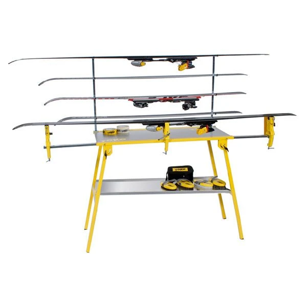 Zusammenklappbarer Servicetisch mit 110 x 50 cm grosser Abstellfläche aus Aluminium. Die spezielle Bauweise ermöglicht einen modularen Ausbau zu einem professionellen World Cup Arbeitstisch. Inkl. Auszugsstangen (Extract pole).